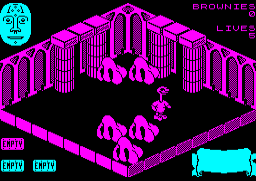 But don’t fret poor things, each of the tasks has now been numbered so at least you know which task you’re supposed to tackle next; the only problem is finding out how you complete them. Three channel music adds extra atmosphere to the game as you whizz around the factory. A special mention must go to the loader — it tells a story whilst the game loads and the music is superbly done. £7.95 buys you this piece of arcade adventuring action, only £2 more than the 48K original.