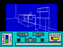 First, however, a means of transport is essential. Fortunately the Prestinium Falcon has crashed near an airfield, where a craft can be bought — or stolen, risking the retaliation of its owner. The manoeuvrable craft handles like a plane; it can fly backwards as well as forwards — very disconcerting! — and can also travel along the ground at a reduced speed. The mercenary’s location on the planet is given by coordinates. At location 9,6 is a hangar giving access to the underground city, which is explored on foot. Most of the doors to the interconnected rooms and corridors are oblongs, but a few are differently shaped — and locked. They can be unlocked with keys of the same shape.