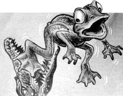 As long as you can go along with the fact that frogs drown if they fall in the river, then as a game type ‘Froggers’ have a lot going for them. The object of the game is to guide your frog across a busy road without getting squashed under the vehicles, and then across the river on logs and turtle backs without falling off, getting eaten by crocodiles or run off the screen edge and so into a frog home on the far bank.