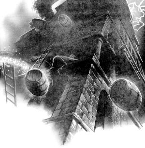 Apart from Krazy Kong, this is the only version with a loading screen picture. The game itself is a variation on the Kong theme — rescue your girl from the clutches of the evil black knight. There’s the usual barrels and holes to jump and ladders to climb. Also a handy umbrella to break an accidental fall (once). The game is very fast, probably the fastest of the lot, but the graphics are rather small and colourless. Jumping is sudden and control generally is difficult due to speed and poor keyboard layout. Ladder climbing is automatic, so there’s no going back! This is a difficult game to play (not a bad thing), but with its uninspiring graphics and lack of playability, I didn’t really enjoy it.