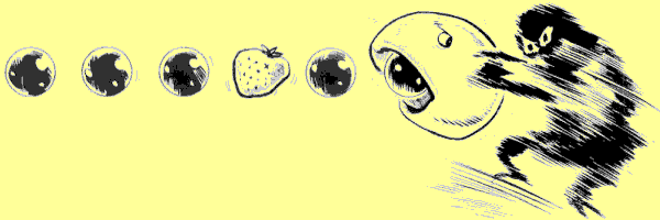 with the odd lemon positioned randomly in it. Power pills, too, appear randomly
