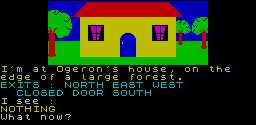The story starts off for real in front of Ogeron’s house with exits North, West, East and South through a door. What now?