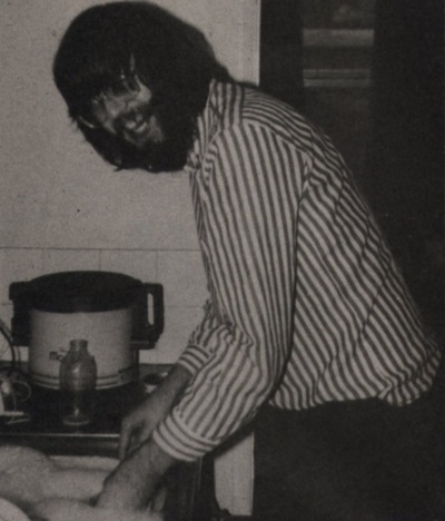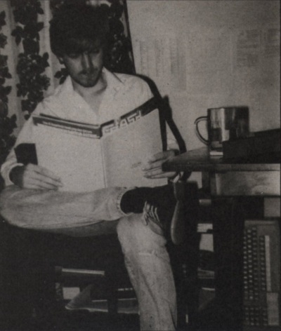 Who’s next? Ah yes, the prime of our little clutch, Mr. Brattel, given his formal address in keeping with the general ‘Man About Town’ image that he projects. Always cool and calm in a crisis, he is the only guy I know to drive a car over a cliff and climb out muttering ‘Eer, I think we’ve done it this time Psi!’. He thought the whole incident hysterically funny until the thought ‘What’s Graham going to say?’ occurred to him. Practically the only thing that can provoke a violent reaction from the illustrious Mr Brattel is uncooperative hardware. There are several battered Spectrums littered around the house to testify to this. Outside of programming, Simon builds things. The list is almost endless, his own computers, audio power-amps, things to put in Beebs that make them belch, an endless series of pre-amps and things to interfere with Wook’s radio equipment. Wook, by the way, is a practising radio amateur, and target for many radio-orientated practical jokes.