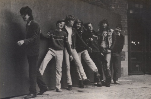 The Odin programming team, trying to Let It Be? Left to right: Paul Salmon, Robbie Tinman, Max B Count (aka Steve Wetherall), Stoo Fotheringham, Marc ‘Wonga’ Dawson, Colin Grunes, and last, but not least, H G Buckett alias George Barnes. Stupid idea, really, asking the gang to list their own names.