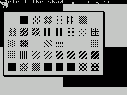 “Select the shade you require” is the prompt on the screen which allows you to choose from the forty shading patterns available in the AMX MOUSE screen art package