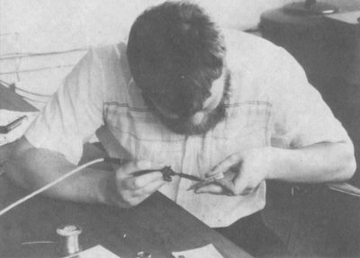 Ian Oliver wrestles with soldering iron and edge connector, to fix a Kempston/128 bug