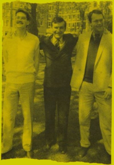 Ruud and Ernie Peske enjoy the summer sunshine in Soho Square with Mark Strachan playing ‘publisher in the middle’. Ernie is on the left, with the moustache...