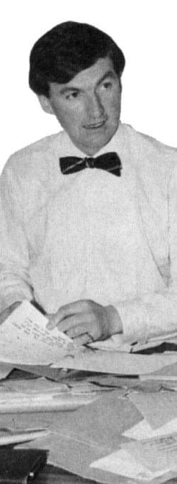 Mark Strachan (the MARK in DOMARK) wended his merry way up to Ludlow this month to show us Trivial Pursuits which is due out on the Spectrum in September. While he was here he had a quick riffle through the GENESIS — BIRTH OF A GAME competition entries. Here he is, snapped at the official Competition desk in CRASH TOWERS. As you can see from the photograph, Mark was clearly ‘amazed’ by the number and general standard of entries.