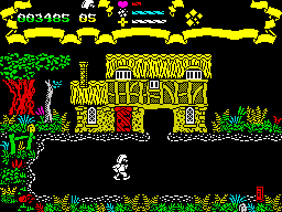 ‘The outdoor scenery didn’t play very well,’ explains Steve. ‘It’s very much a room game, like Technician Ted, with the difference that instead of abrupt screen changes, the program flips half of one room and half of the next, so there’s a sort of inbetween screen as you exit one room and enter another.’