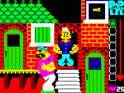 ‘The graphics happened by chance. The licensors, King Features — were at pains to point out that any game had to include fair representations of the central cartoon characters, so I sat down with a large grid and came up with a figure of Popeye which was seven characters high and six wide — 42 characters to move for each frame!