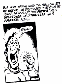 The LM strip also introduces those nice little chaps, the Grumlins. These are some of John’s regular characters, that tend to crop in his work, generally messing things up. “I use them whenever the plot wants to change direction a bit... If something blows up when you least expect it, it’s handy to be able to blame the Grumlins.”