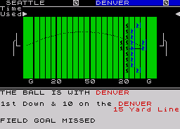 On the field, the player can choose between three offensive and defensive plays, and a field goal attempt (no punt option). This is where Headcoach really fails, as the real sport involves dozens of various recognised plays, as well as scope for specially designed moves.