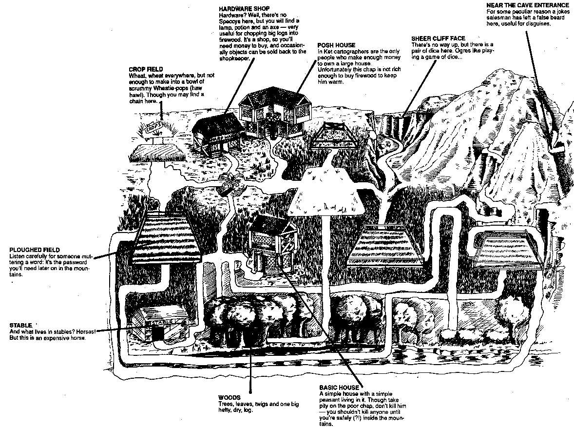 Wanting to see you safely on your way, we’ve given you this wonderfully drawn (ta Mel) map of the village of Ket. The paths show the route to the entrance of the mountains, where the adventure begins proper. But you’re going to have to complete several tasks before the quests which face you in the mountains...