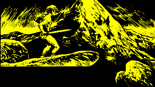 When entering commands, use the verb/noun combination. You will be told if your command is not understood, or you try doing something impossible. Here are a few sample commands... Get Sword, Drop Sword, Go North, Say Hello, Count Coins, Say Hello... You have additional special commands: Inventory — lists the objects you have, Stat — shows your status and condition, Score — how well you are doing, Beep — turns off the Speccy keyboard beep, Help — could be useful, Look — redescribes the current surroundings, Save/Load, and Quit.