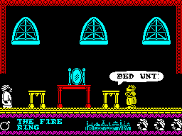 The corpulent ruler can move left and right, jump upwards and pass through doors and other entrances. Objects found en route are collected by simply walking over them. Only two objects can be carried at once, the last acquired being displayed at the bottom of the screen. An inventory of items carried is accessed by pressing the space bar.