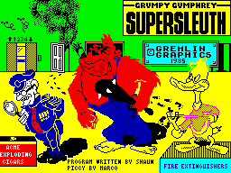 There’s a variety of objects scattered throughout the store which can be used to help Grumpy in his chores. To pick up an object, Grumpy has to be moved up to it and the pick up key pressed, whereupon the object is transferred to his pocket — area at the bottom right of the screen. Once an object has picked up it can be dropped, or knocked out of Grumpy’s hands by jostling shoppers.