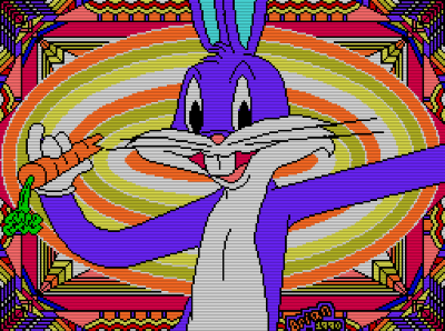 The swine! I was led to believe the machine was capable of a 64 colour display, but they’ve lied to me! The hi-res Mode is offering no less than 128 colours on screen, with a display of 512 x 192 pixels, and I’m damned if I can tell the difference between this output and my Atari ST. The rear panel features the usual TV, joystick and cassette connections, plus dedicated mouse hole, light- gun socket, one of those 64-pin Euroconnector thingies for plugging into whatsits, a little button that I refuse to reveal the purpose of, and my favourite pair of plugholes MIDI-IN and MIDI- OUT, that are all set up for networking. This is where I get to play music!