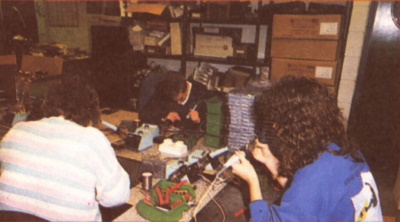 Look — some people are actually working! These ladies are putting a disk-drive together. Better than DOSsing around. DOSing?! Haw Haw!
