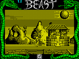 Before the final showdown you must travel through the wild and dangerous lands that border the Beast Lord’s domain. Evil-minded creatures are out to stop you reaching their master. Your defence are your fists and your feet, but, as you travel along, items present themselves for collection: keys (to open locked doors), potions (different effects) and weapons. With every hit you take from the enemy your heart rate rises. If it beats too fast it explodes (not a very nice death).