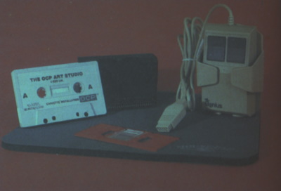 Mice are used on 16-bit computers as standard equipment but with 8-bit machines there’s been no such luxury — until now. In the Genius Mouse pack you get everything you could possibly want when using a mouse (no I don’t mean a cage and a little wheel for it to run around!): you get the mouse in a neat storage box, a mouse holder to keep it in, a rubber mouse mat, and the Art Studio software.