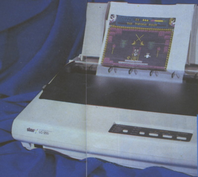 With the LC200 Centronics printer you can print out any screen that has been saved on the Spectrum using the SCREEN$ method. The printer goes down the screen line by line printing each colour in turn, gradually building up a picture. This method of printing is time consuming and printouts range from a few seconds to quarter of an hour depending on the number of colours and the detail in the picture.