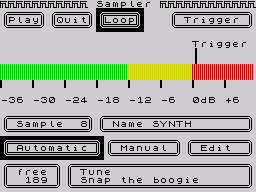 For those with a MIDI instrument, you can connect it to The Music Machine and use it to trigger sampled sounds or play a mixture of the MIDI instrument sounds and The Music Machine effects. The songs and sounds you can create using this system are hardly Top Of The Pops quality but The Music Machine does provide a good starting point for the beginner.