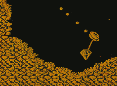 As if keeping control of the ship isn’t enough hassle, don’t forget Jetman has to collect things from each planet’s surface and the underground cavern mazes. Jetman lowers a grappling hook from the pod which grabs an object. The object then has to be flown safely back to the mothership.