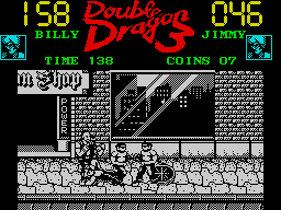 As expected, many of the levels have streetfighting sections where Billy and Jimmy are set upon by gangs of bloodthirsty thugs. Apart from fists and feet (they taught Jackie Chan everything he knows about the martial arts), B and J can nip into the local weapons shop and purchase a wide range of explosive devices and blunt instruments to use against the bad guys. Nunchukas, grenades, missiles, knuckledusters and more are all on offer (for the right price, of course). Though if the coffers are bare Bill and Ted... sorry Jimmy can find the odd crate or dustbin to lob around.