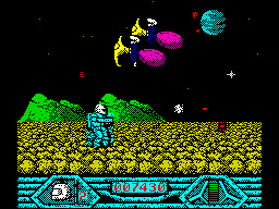 There’s one BIG landscape to explore, which scrolls in eight directions to keep the main sprite in the centre of the screen.