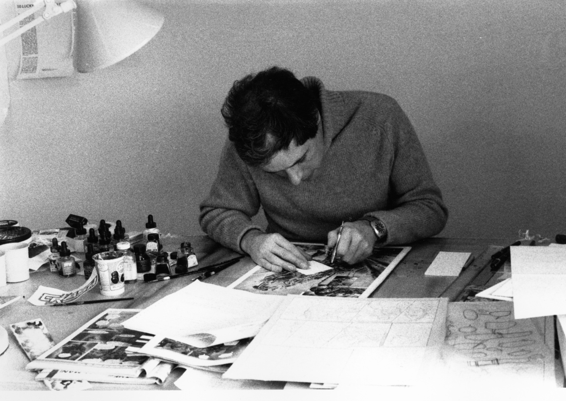 Airbrushing background colour for the cover of the CRASH 1985 Christmas special (#24). |